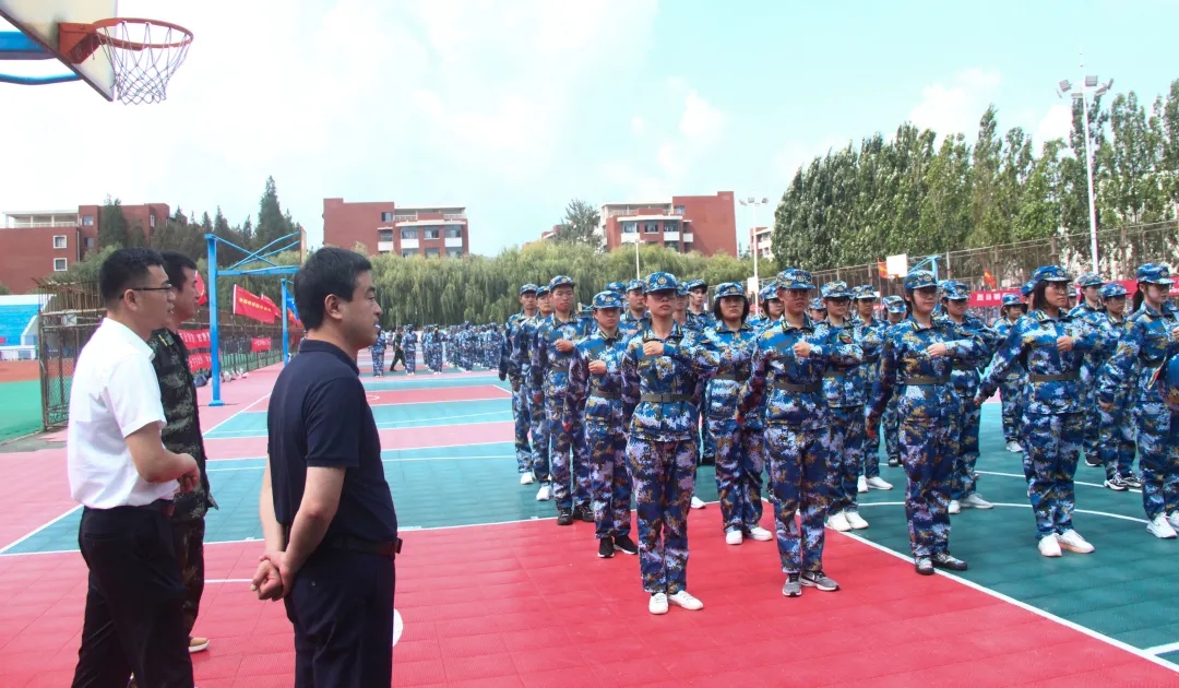 参训新生身着蓝色迷彩服,放眼望去像是蓝色汪洋般整齐有序。穆玉兵与新生辅导员和军训指导教官进行热切交流,从学生精神面貌、训练水平、军训强度等多方面了解新生军训的整体情况。于军训教官带领下,新生军训训练有素,纪律严明,无惧烈阳,展现出良好精神风貌。随后,其一行在旁观看各连队训练,并慰问军训教官,感谢各位教官的辛勤付出。据悉,本次2021级新生军训人数共计243人,分为破云连、芳华连、巾帼连三3个连队,将依次训练匕首操和分列式等相关项目。